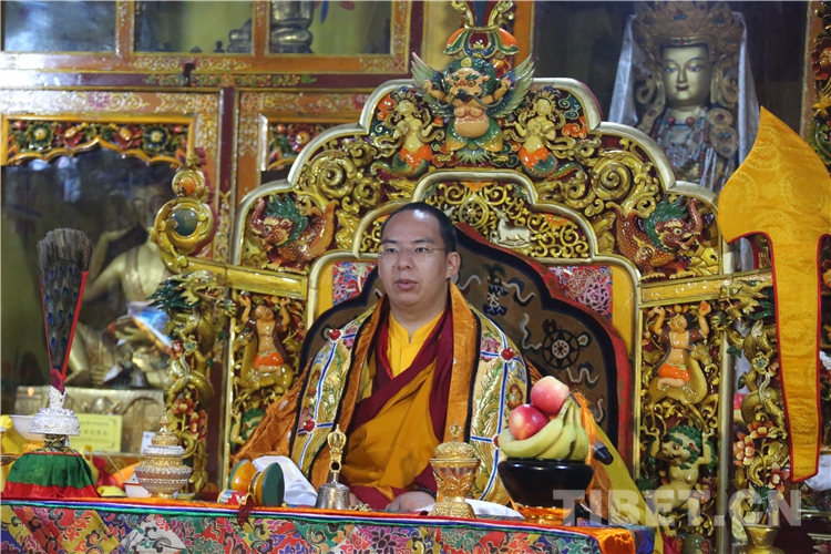 圖為十一世班禪在帕巴寺為僧人摸頂賜福 攝影:王淑