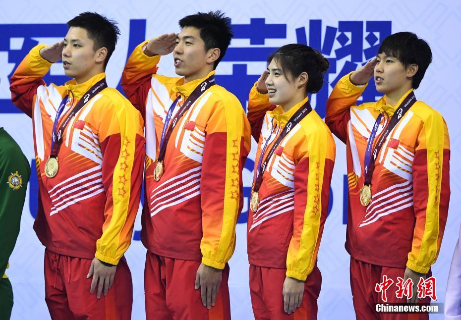 10月22日晚,在湖北省武漢市進(jìn)行的第七屆世界軍人運(yùn)動(dòng)會(huì)男子4x50米混合救生接力決賽中,中國隊(duì)以1分27秒37的成績獲得冠軍。