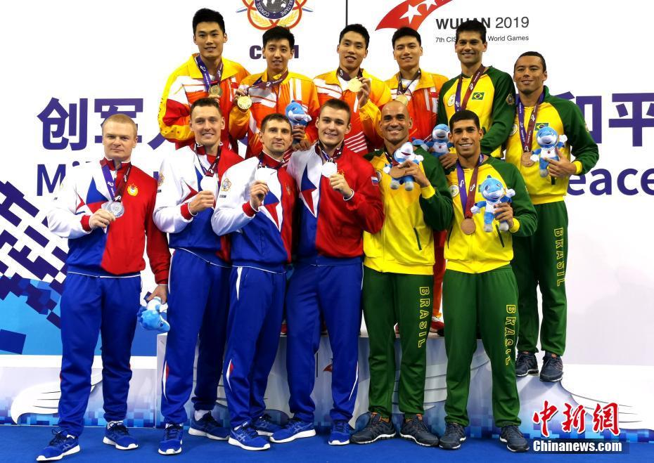 武漢軍運會 中國隊獲男子4x50米混合救生接力賽冠軍