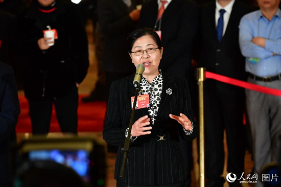 全國政協(xié)委員、故宮文物醫(yī)院院長宋紀蓉接受記者采訪。人民網(wǎng)記者 于凱 攝