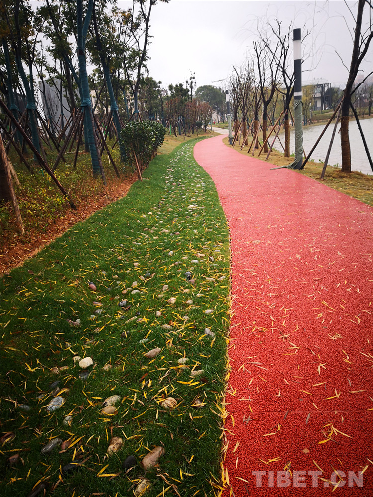 圖為后湖改造后的道路 圖片由長(zhǎng)沙市岳麓區(qū)水利局提供