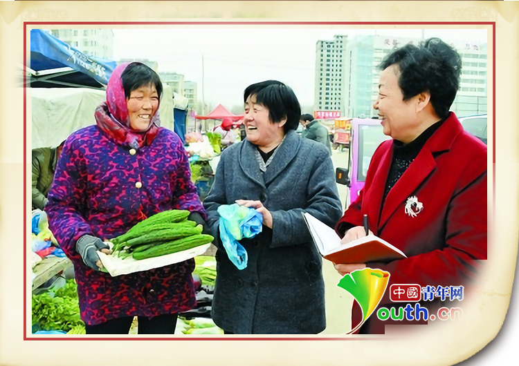 王銀香(右一)在曹縣蔬菜市場調(diào)研。資料圖