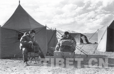 無人區(qū)13號營地,發(fā)電報與北京聯(lián)系 李明森/攝影
