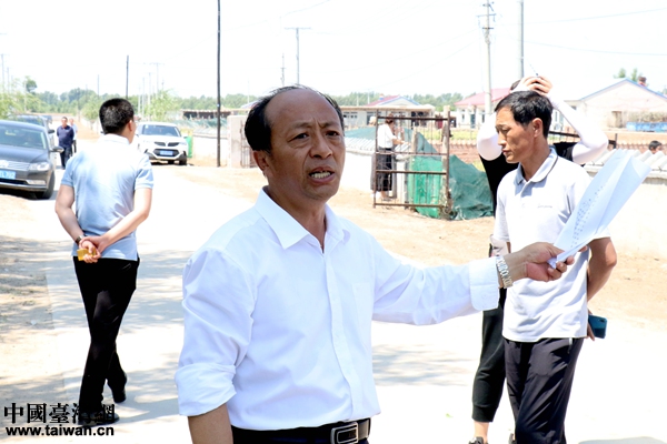 烏蘭花村第一書記王學(xué)范向采訪團講述脫貧故事。(中國臺灣網(wǎng) 尹賽楠 攝)