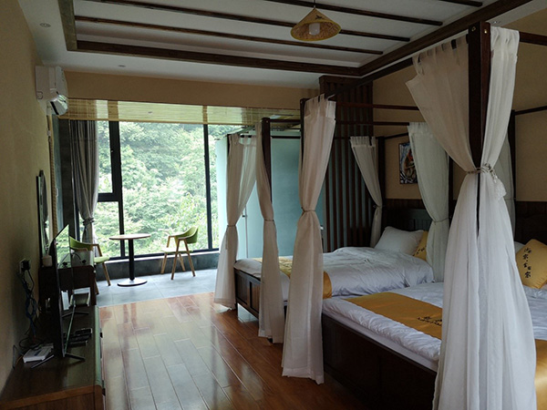 2016年,看到這一前景的代輝決定回鄉(xiāng),投入40萬(wàn)元給自家平房加蓋一層,裝修出三間屋子當(dāng)做客房。其中,自籌20萬(wàn),貸款20萬(wàn),享有三年貼息貸款優(yōu)惠,由政府貼息7%。代輝還有烹飪手藝,村里辦紅白事總請(qǐng)他當(dāng)主廚,因此,農(nóng)家樂既是旅店又是餐館,生意一點(diǎn)不愁,“旺季一天能有30來人,住宿總是滿員,至少提前一周預(yù)定,一年下來能賺7-8萬(wàn)塊。”
