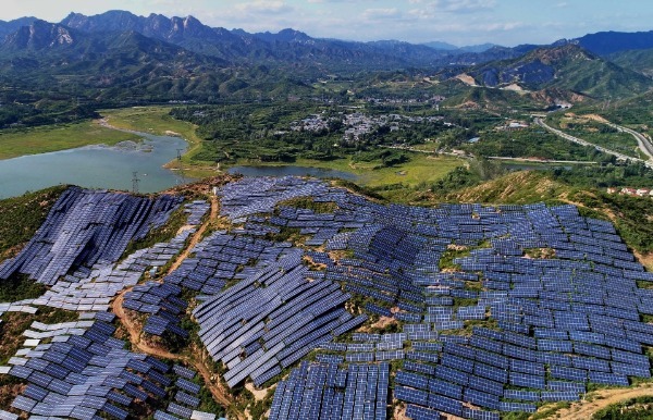 這是8月28日無人機拍攝的平山縣崗南鎮(zhèn)李家莊村附近的光伏發(fā)電站。新華社記者 楊世堯 攝