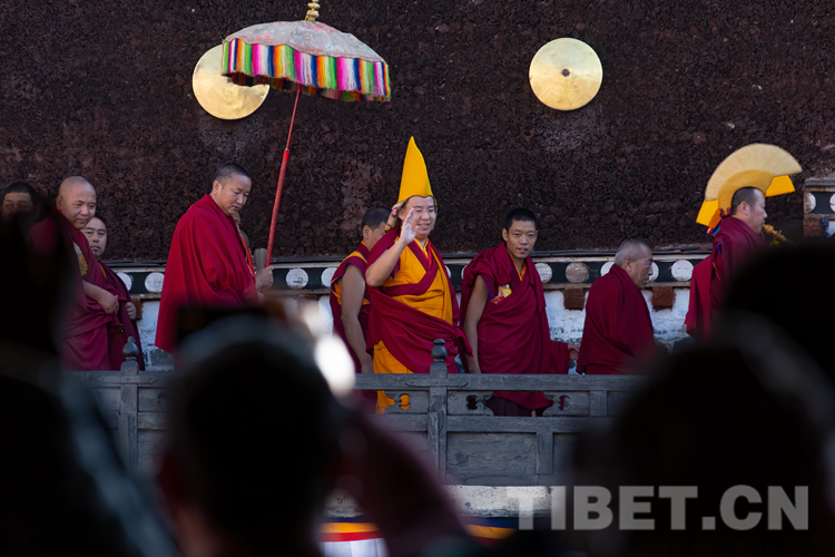 圖為十一世班禪向僧俗信眾、游客揮手致意 攝影:趙耀