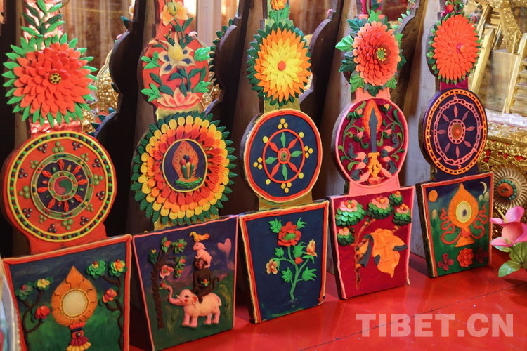 圖為供奉于佛殿內(nèi)的酥油花 攝影:澤仁措姆