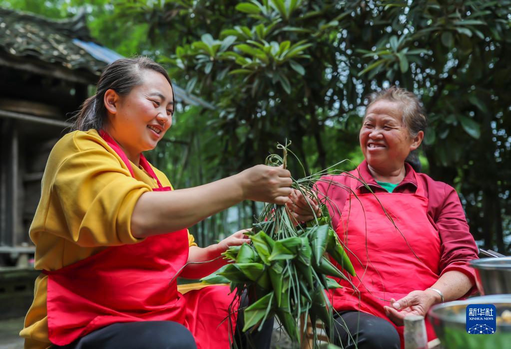 5月25日,村民在貴州省岑鞏縣思旸鎮(zhèn)龍江村包粽子。新華社發(fā)(胡攀學(xué) 攝)