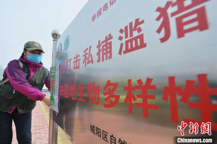 青島市城陽區(qū)野生動(dòng)植物保護(hù)協(xié)會(huì)的志愿者來到社區(qū)、菜市場(chǎng)附近張貼“禁食野味”海報(bào)?!⊥鹾I 攝