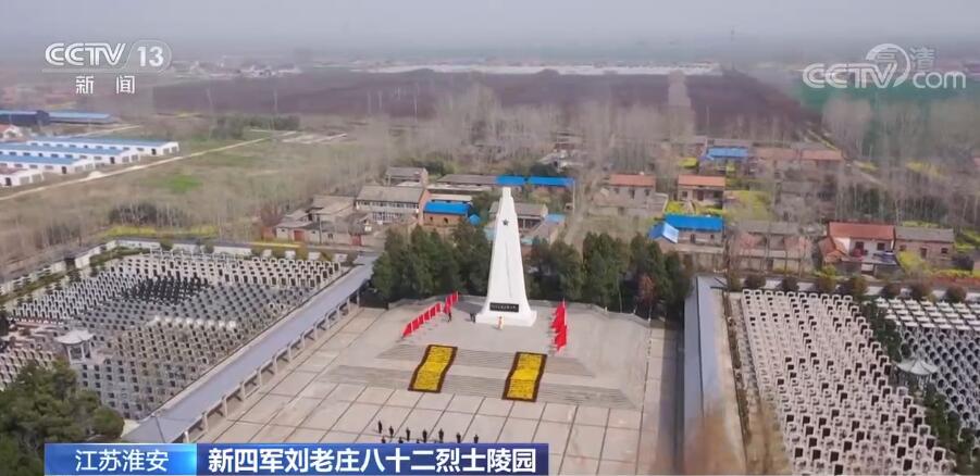 現(xiàn)在我們看到的是位于江蘇淮安的劉老莊八十二烈士陵園。1943年春,侵華日軍對蘇北抗日根據(jù)地進(jìn)行掃蕩。新四軍三師七旅十九團(tuán)二營四連的82名官兵為了掩護(hù)群眾和當(dāng)?shù)貦C(jī)關(guān)安全轉(zhuǎn)移,在劉老莊和一千余日寇進(jìn)行殊死血戰(zhàn),斃敵170多人,終因寡不敵眾全部壯烈犧牲。抗戰(zhàn)勝利后,這支英雄的連隊被命名為“劉老莊連”。
