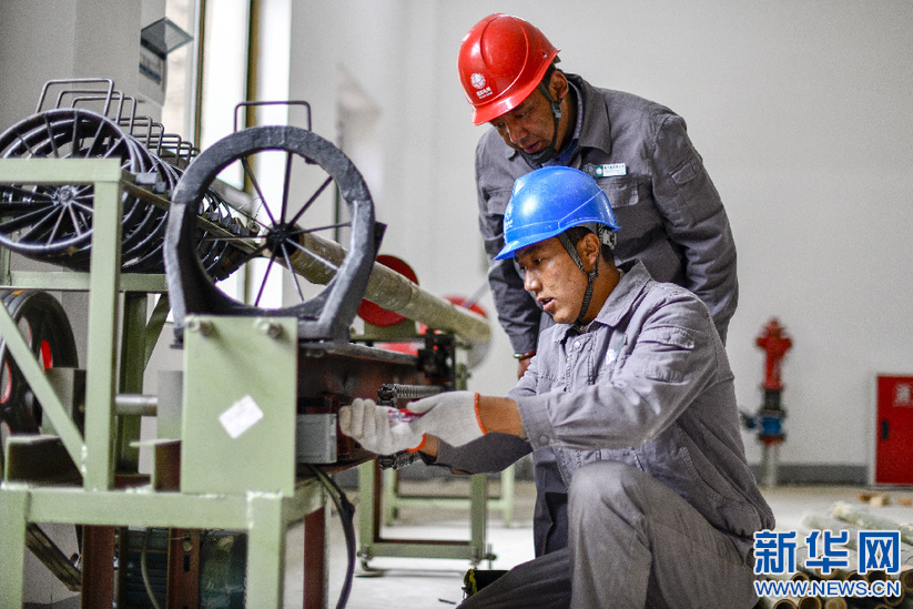 在西藏山南市隆子縣玉麥鄉(xiāng),供電服務(wù)站工作人員在玉麥鄉(xiāng)竹器廠檢查機(jī)器設(shè)備(5月27日攝)。新華社記者 王炳坤 攝