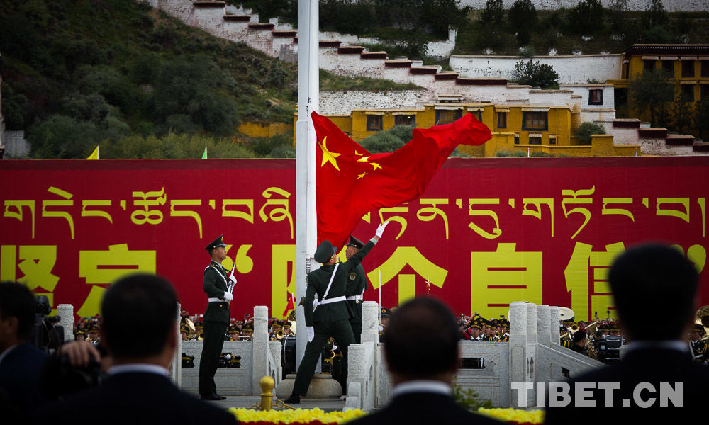圖為2019年10月1日,西藏自治區(qū)各族各界代表慶祝中華人民共和國成立70周年升國旗儀式在布達(dá)拉宮廣場(chǎng)莊嚴(yán)隆重舉行。攝影:趙耀