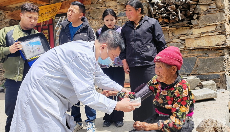 圖為 “同心·共鑄中國心”2025阿壩行大型健康公益綜合服務(wù)活動(dòng)義診醫(yī)療專家在四川省阿壩州馬爾康市日部鄉(xiāng)入戶巡診,為行動(dòng)不便的老人送醫(yī)送藥 攝影:張宏武