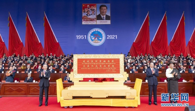 2021年8月19日,西藏自治區(qū)和平解放70周年。中共中央政治局常委、全國政協(xié)主席、中央代表團團長汪洋向西藏自治區(qū)贈送了中共中央總書記、國家主席、中央軍委主席習(xí)近平題詞的“建設(shè)美麗幸福西藏 共圓偉大復(fù)興夢想”賀匾等紀念品。