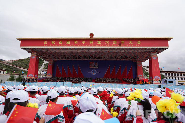 布達(dá)拉宮廣場(chǎng)上,身著西藏特色民族服裝的拉薩各族各界群眾代表,手持花束、哈達(dá)隆重集會(huì),熱烈慶祝西藏和平解放70周年。[詳細(xì)] -