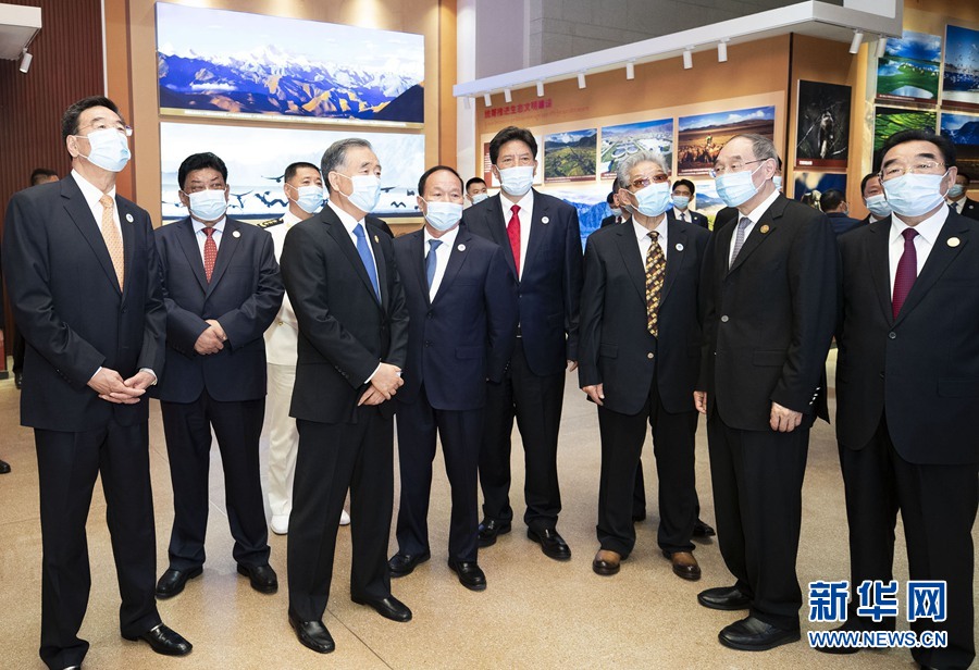 汪洋等走進(jìn)展廳,一邊仔細(xì)觀看展板,一邊認(rèn)真聽取講解。《十七條協(xié)議》簽字儀式歷史照片、實(shí)行民族區(qū)域自治制度的展板、對口援藏資金圖表、《西藏自治區(qū)民族團(tuán)結(jié)進(jìn)步模范區(qū)創(chuàng)建條例》圖片……一塊塊展板、一張張圖片圖表,生動展現(xiàn)了70年來西藏在黨的領(lǐng)導(dǎo)下取得的長足發(fā)展。汪洋不時駐足觀看,詳細(xì)詢問有關(guān)情況,對西藏近年來各項事業(yè)取得的成就予以充分肯定。
