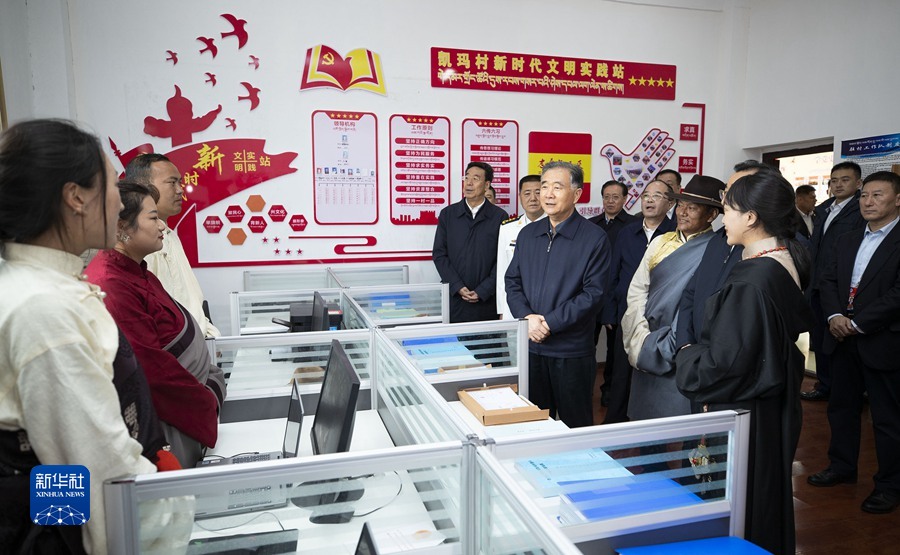 8月20日,帶著以習(xí)近平同志為核心的黨中央的親切關(guān)懷和全國(guó)人民的深情祝福,中共中央政治局常委、全國(guó)政協(xié)主席、中央代表團(tuán)團(tuán)長(zhǎng)汪洋率中央代表團(tuán)部分成員赴那曲市,看望慰問那曲各族各界干部群眾。這是汪洋在那曲市色尼區(qū)羅瑪鎮(zhèn)凱瑪村視察基層黨組織建設(shè)工作情況。新華社記者 黃敬文 攝