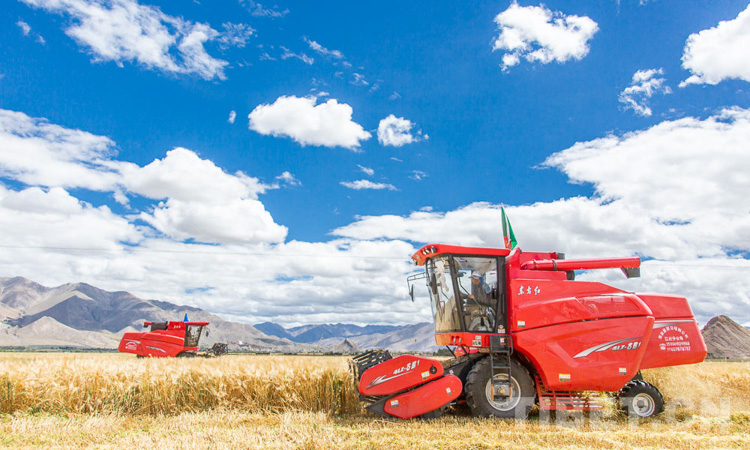 圖為江孜縣青稞機(jī)械化收割現(xiàn)場 攝影:趙耀
