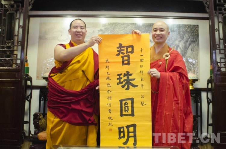 7月12日,班禪時(shí)隔十六年后再次來到這座千年古剎并開展佛事活動(dòng)。全國政協(xié)委員、中國佛教協(xié)會(huì)駐會(huì)副會(huì)長、四川省佛教協(xié)會(huì)副會(huì)長、成都市佛教協(xié)會(huì)會(huì)長、文殊院現(xiàn)任方丈宗性陪同。