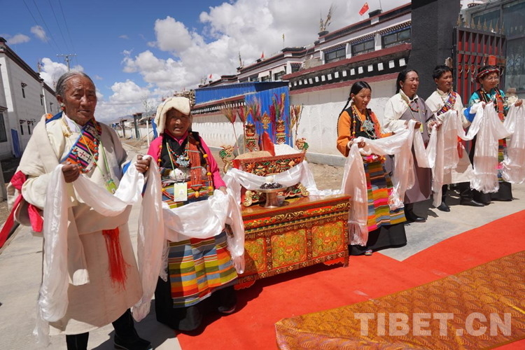 位于薩迦縣扯休鄉(xiāng)東北部的嘎吉林村,是庫(kù)區(qū)搬遷新村,2020年3月,全村139戶769人從海拔4000多米的土坯房搬遷到了這里海拔3800米的新房。得知班禪要來(lái)的喜訊,嘎吉林村村民及信教群眾身著節(jié)日盛裝、手捧潔白哈達(dá),一早就自發(fā)聚集在村廣場(chǎng)上迎候班禪。村民旦珍高興地對(duì)記者說(shuō)道:“自從搬到這兒以后,政府給我們每人分了5.5畝田地,每戶人家都享受著國(guó)家搬遷優(yōu)惠政策,住上了福利幸福房。尤其是有了村里的集體合作社,再也不用像以前那樣單打獨(dú)斗各家做各自的事了。現(xiàn)如今,無(wú)論是生活還是經(jīng)濟(jì)收入都一年比一年好?!?/p>
