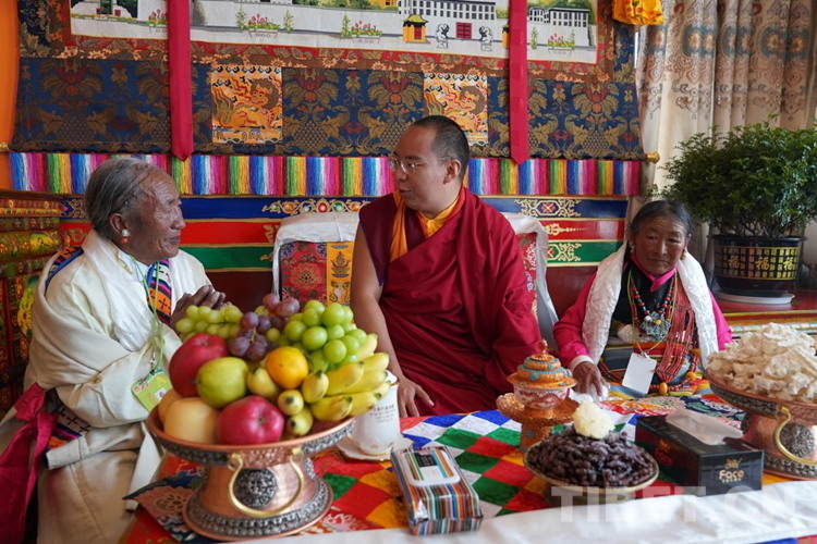 圖為班禪在歐珠家詢問(wèn)搬遷后的生活情況 攝影:王淑