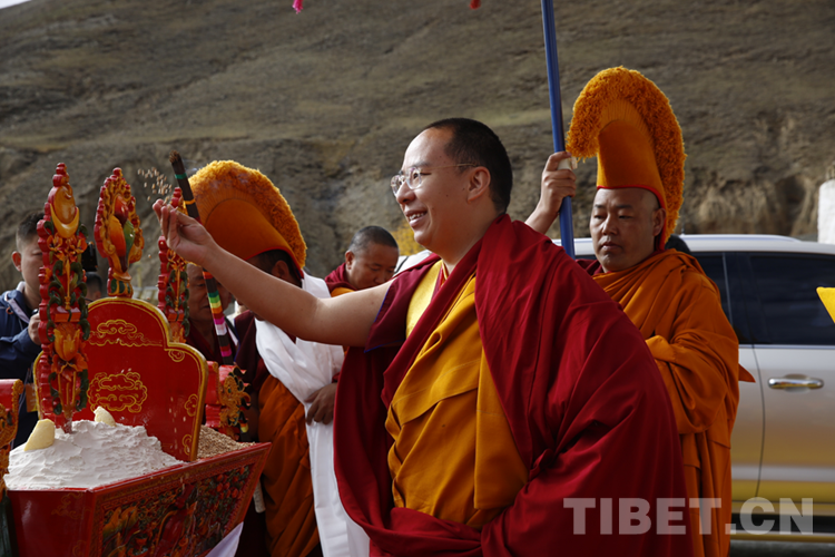 圖為班禪在拋灑青稞、祈愿豐收 攝影:王淑