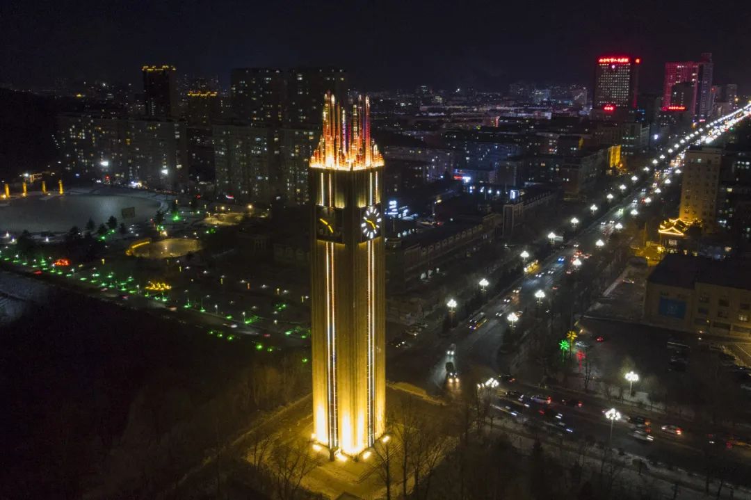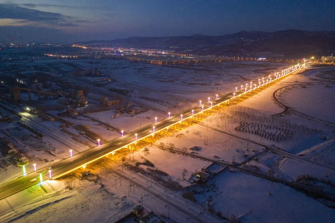 位于七臺(tái)河的冠軍橋燈火通明