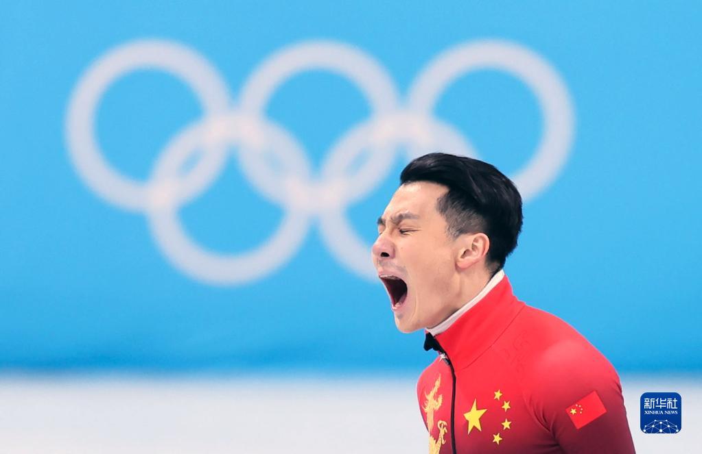 2月7日,任子威在比賽后慶祝。新華社記者 徐子鑒 攝