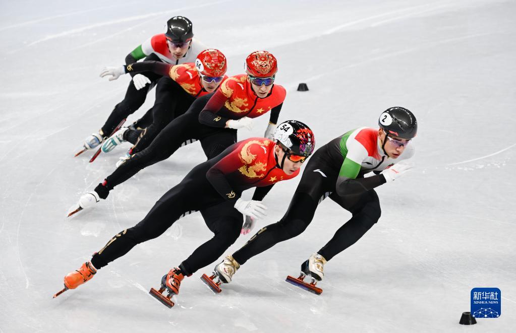 2月7日,任子威(右二)在比賽中。新華社記者 李尕 攝