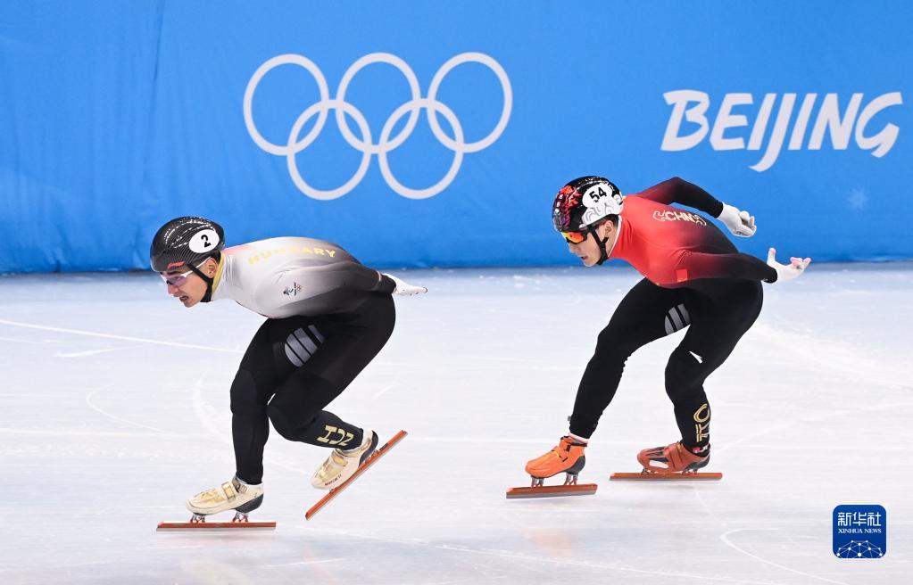 2月7日,中國選手任子威(上右)與匈牙利選手劉少林(上左)在比賽中。新華社記者 蘭紅光 攝