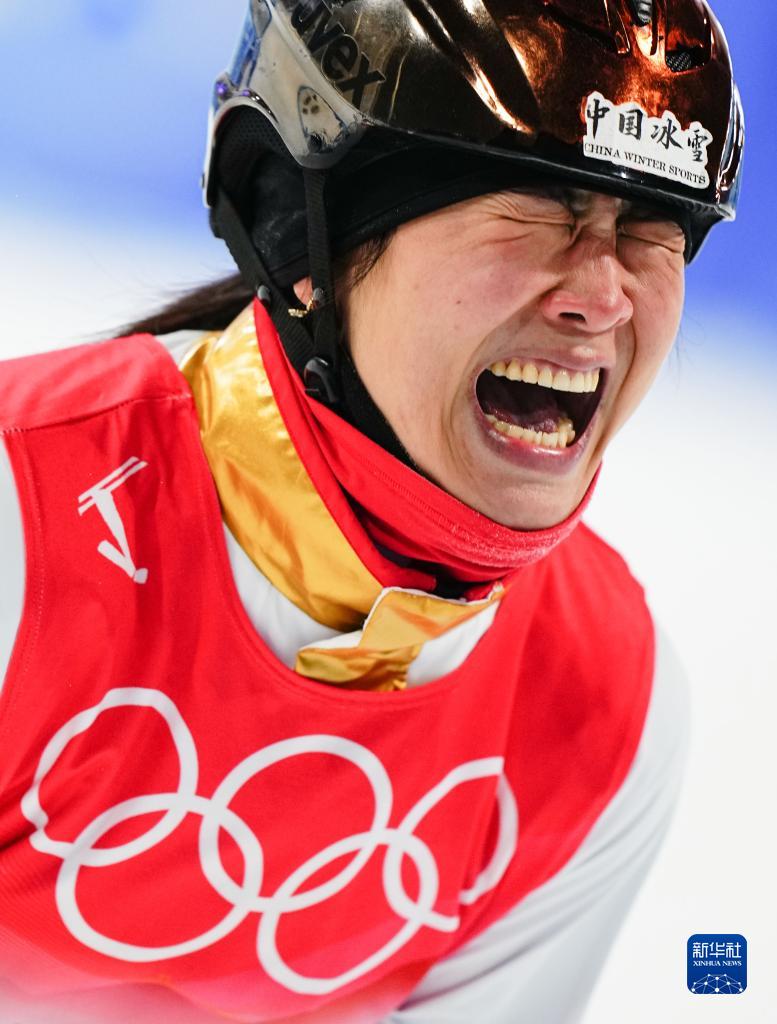 2月14日,中國(guó)選手徐夢(mèng)桃在比賽中慶祝。新華社記者 許暢 攝