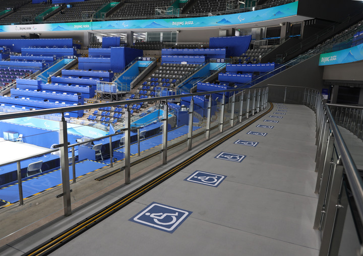 3月1日,國家體育館看臺席的無障礙坐席。新華社發(fā)(胡星宇攝)