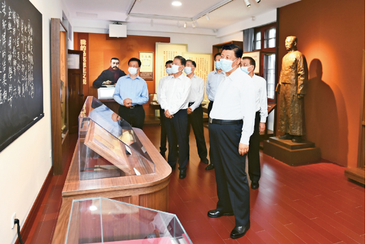 “這兩個地方的歷史,生動詮釋了中國共產(chǎn)黨是怎么來的、中華人民共和國是怎么來的,給我們上了一堂鮮活而又生動的黨史課?!?021年6月25日,在中國共產(chǎn)黨即將隆重慶祝百年華誕的特殊時刻,中央政治局就用好紅色資源、賡續(xù)紅色血脈舉行第三十一次集體學(xué)習(xí)。這是中央政治局帶頭開展黨史學(xué)習(xí)教育的一項重要安排,以參觀和討論相結(jié)合的形式進行。習(xí)近平總書記帶領(lǐng)中央政治局同志來到北大紅樓、豐澤園毛主席故居這兩個在黨的歷史上具有標志性意義的地方參觀瞻仰,緬懷革命先輩的豐功偉績,感悟共產(chǎn)黨人代代傳承的紅色血脈。參觀結(jié)束后,在中南海懷仁堂這個見證了首屆兩會等黨和國家歷史上諸多重大活動的紅色殿堂,總書記主持集體學(xué)習(xí)并發(fā)表重要講話,深情回望我們黨走過的光輝歷程,熱忱禮贊黨團結(jié)帶領(lǐng)人民在百年奮斗中凝鑄的紅色傳統(tǒng),以“五個始終堅持”從科學(xué)理論指導(dǎo)、理想信念、初心使命、光榮革命傳統(tǒng)、推進自我革命等方面,對用好紅色資源、賡續(xù)紅色血脈提出明確要求,并對保護好、管理好、運用好紅色資源提出四個方面的具體要求。