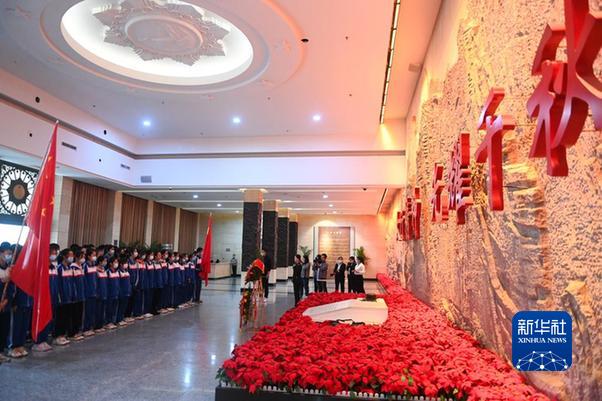 2021年9月18日,中學(xué)生在位于山西省長(zhǎng)治市武鄉(xiāng)縣的八路軍太行紀(jì)念館聆聽(tīng)講解。新華社記者 柴婷 攝