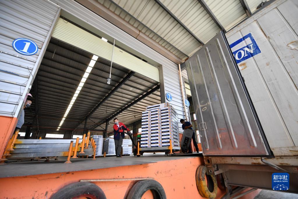 在江西省贛州市南康家具產(chǎn)業(yè)園,工人將即將出口的成品家具裝車(chē)(2020年2月26日攝)。新華社記者 胡晨歡 攝