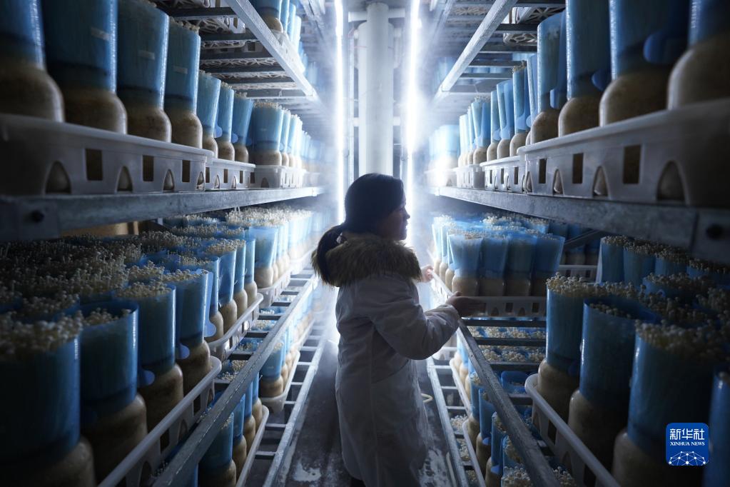 江西省贛州市章貢區(qū)火燃村一家菌菇企業(yè),工人在查看金針菇長(zhǎng)勢(shì)(2020年11月12日攝)。新華社記者 周密 攝