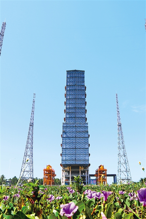 海南文昌航天發(fā)射場的長征七號運載火箭發(fā)射塔架。 新華社記者 曾 濤攝