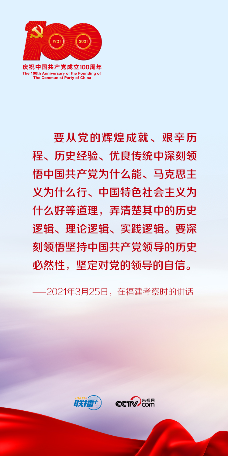 今年是中國(guó)共產(chǎn)黨成立100周年。央視網(wǎng)《聯(lián)播+》特梳理總書(shū)記關(guān)于知史愛(ài)黨的重要論述,與您一起堅(jiān)定理想信念,不斷增強(qiáng)守初心、擔(dān)使命的思想自覺(jué)和行動(dòng)自覺(jué)。