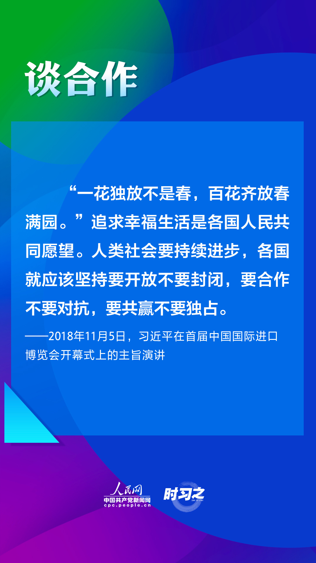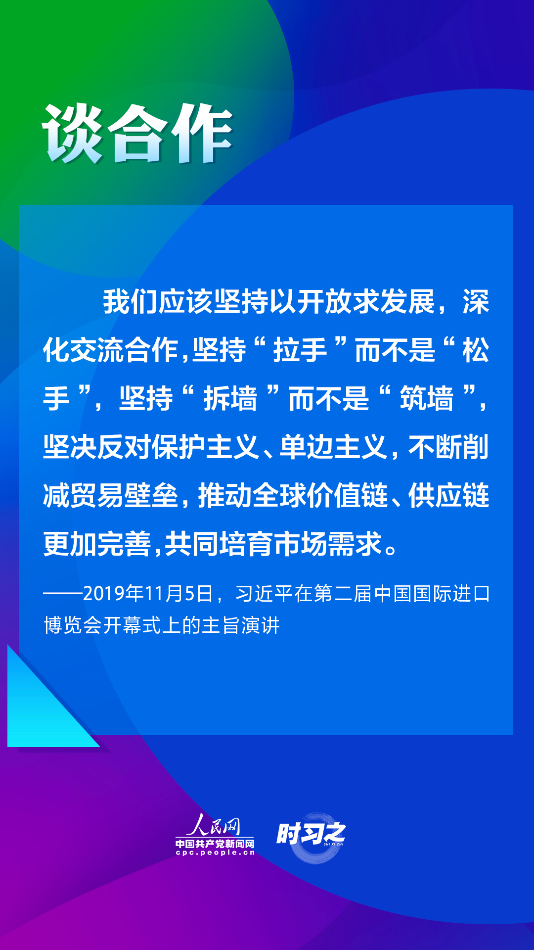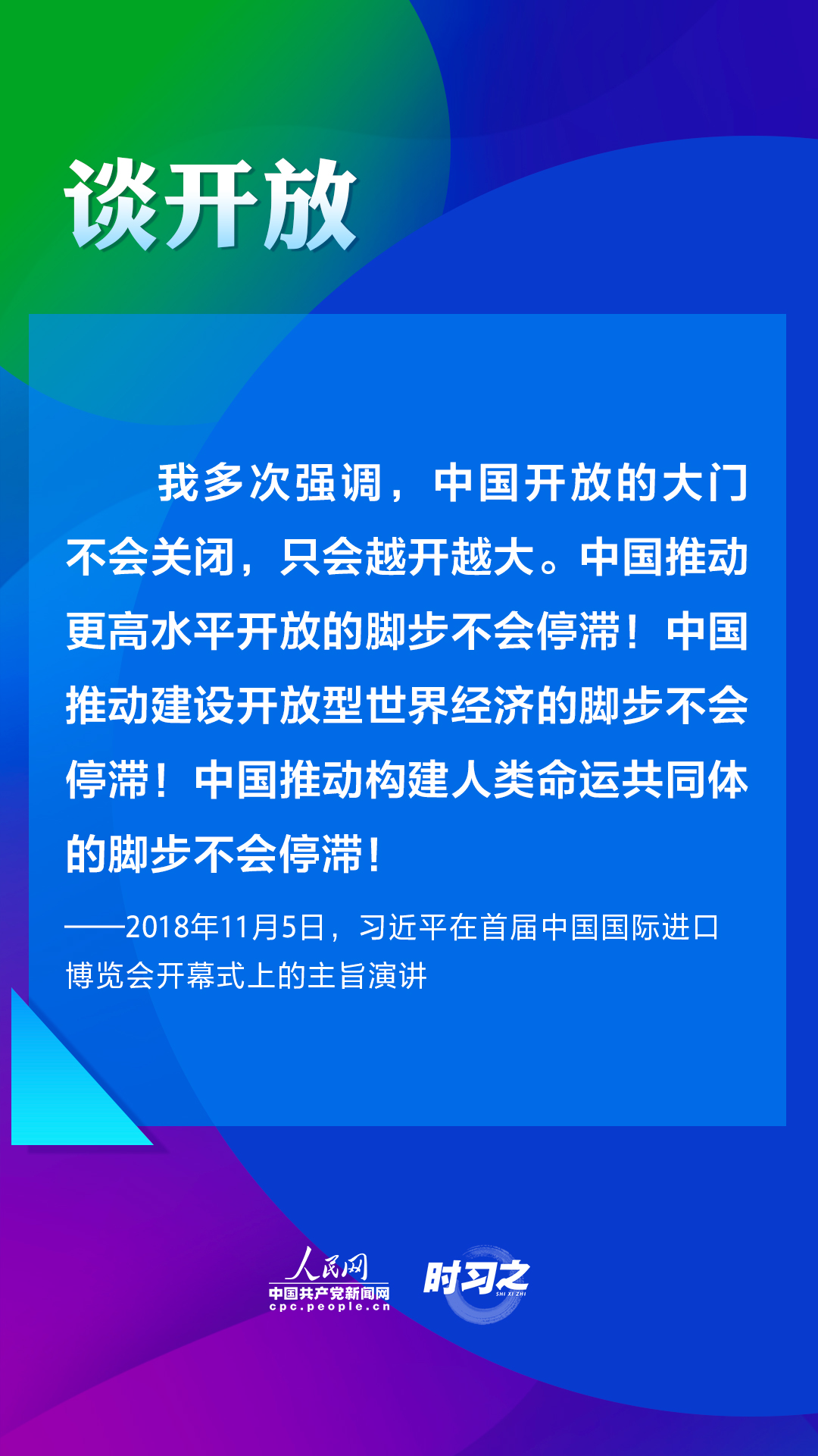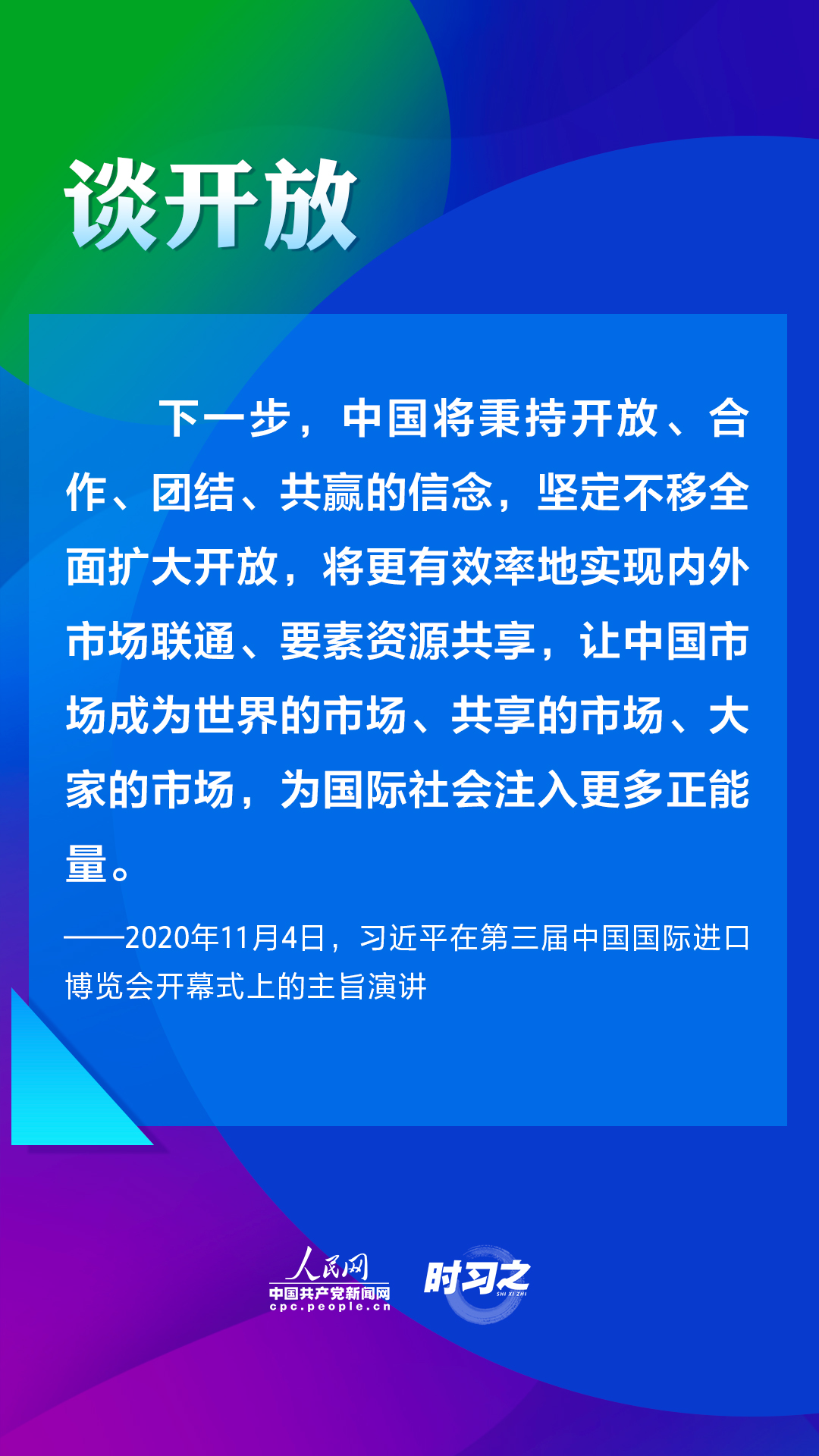 第四屆中國國際進(jìn)口博覽會(huì)將于2021年11月5日至10日在上海舉辦。2018年以來,習(xí)近平主席三次在進(jìn)博會(huì)上作主旨演講,為推動(dòng)建設(shè)開放型世界經(jīng)濟(jì)闡明中國主張。人民網(wǎng)·中國共產(chǎn)黨新聞網(wǎng)“時(shí)習(xí)之”欄目帶您重溫習(xí)近平主席重要講話。