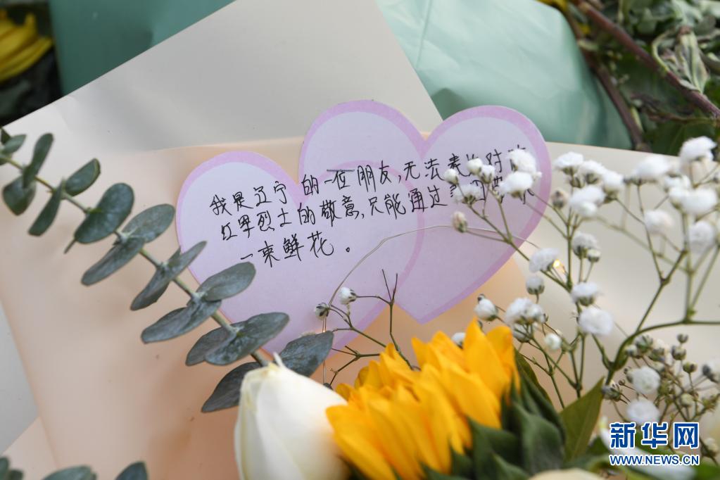 幾乎每份鮮花訂單都有一份令人動容的寄語,前來祭奠的市民將寄托哀思的卡片貼滿烈士陵園的宣傳欄。