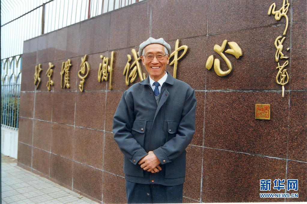 上世紀(jì)90年代,陸元九在北京慣導(dǎo)測試中心調(diào)研時在門前留影。新華社發(fā)(中國航天科技集團(tuán)供圖)