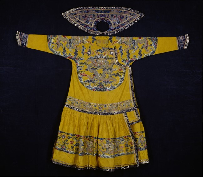 △一號展廳:康熙皇帝夏季所穿的彩云金龍紋男單朝袍