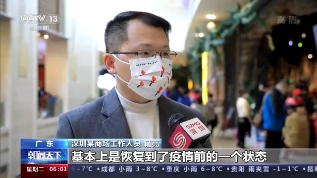 廣東深圳某商場工作人員 籍亮:每日(商場)平均營業(yè)額已經接近500萬的水平,基本上恢復到了疫情前的狀態(tài)。