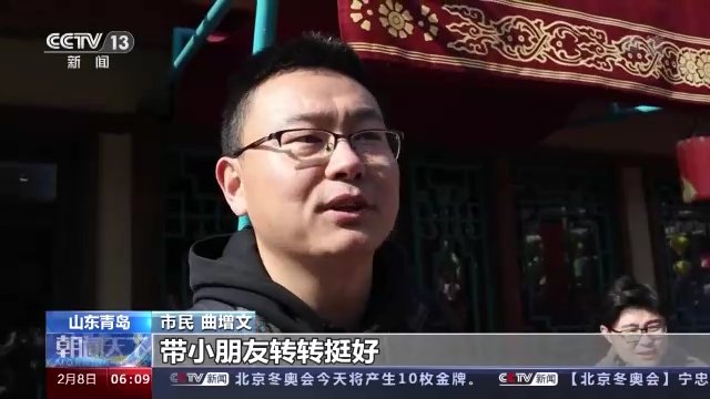山東青島市民 曲增文:草莓采摘、滑雪、小吃、廟會,帶小朋友轉轉挺好。有年味兒了,年味兒就比在家里濃很多了。