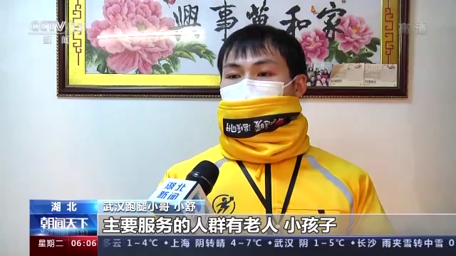湖北武漢跑腿小哥 小舒:我們提供了有幫買、幫送和幫取,主要服務的人群有老人、小孩子,特別是老人這方面比較多。