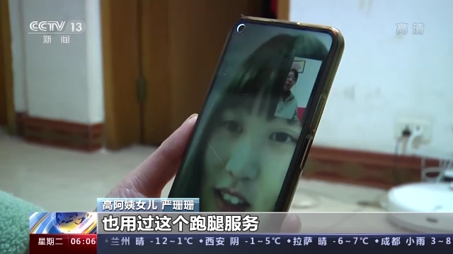 高阿姨女兒 嚴珊珊:她在手機上只用App點一下,她就不用彎腰了,因為之前我在國內也用過這個跑腿服務,挺好的,想著我又不在國內,想著用一下,就正好讓小哥教一下我媽媽怎么用。