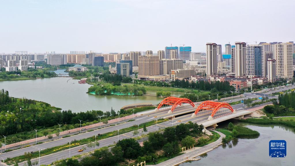 這是我國(guó)西北地區(qū)首個(gè)國(guó)家級(jí)新區(qū)蘭州新區(qū)城市面貌(2022年8月10日攝,無(wú)人機(jī)照片)。新華社記者 陳斌 攝