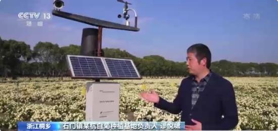 浙江桐鄉(xiāng)石門(mén)鎮(zhèn)某杭白菊種植基地負(fù)責(zé)人 謬悅嘯:這是一臺(tái)無(wú)線農(nóng)業(yè)氣象綜合監(jiān)測(cè)站,它就像我們的眼睛,以前我們都是走到土地里面查看我們的一個(gè)種植情況,現(xiàn)在它能夠給我們檢測(cè)到光照、土壤、水分等信息,傳送到大數(shù)據(jù)平臺(tái),來(lái)幫助我們預(yù)測(cè)氣象所帶來(lái)的一個(gè)病蟲(chóng)害等問(wèn)題,為我們杭白菊提質(zhì)增效、保駕護(hù)航。