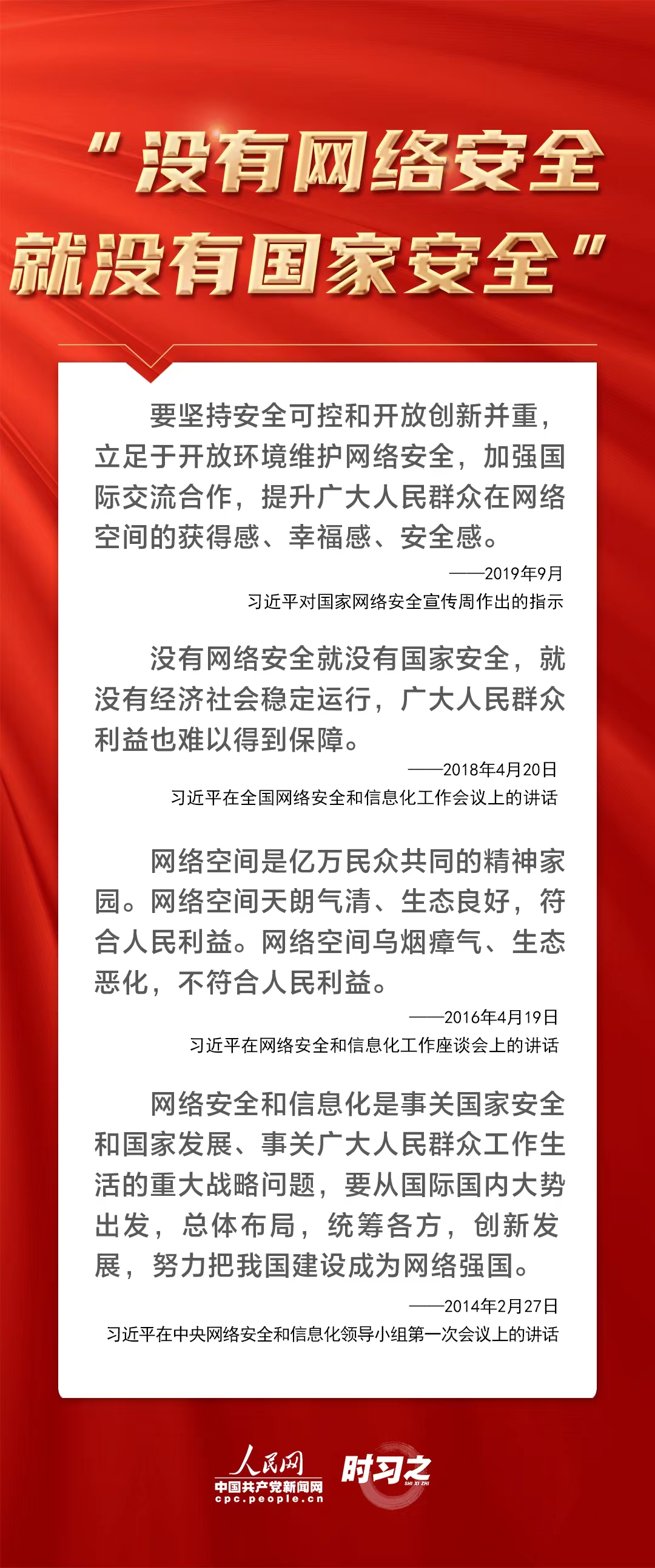 沒有網(wǎng)絡(luò)安全就沒有國家安全。今年是《中華人民共和國網(wǎng)絡(luò)安全法》施行五周年。一直以來,習(xí)近平總書記高度重視網(wǎng)絡(luò)安全和信息化工作,敏銳把握信息時代“時”與“勢”,多次在不同場合就網(wǎng)絡(luò)安全發(fā)表一系列重要論述,為維護(hù)國家網(wǎng)絡(luò)安全,筑牢國家網(wǎng)絡(luò)安全屏障奠定基石。